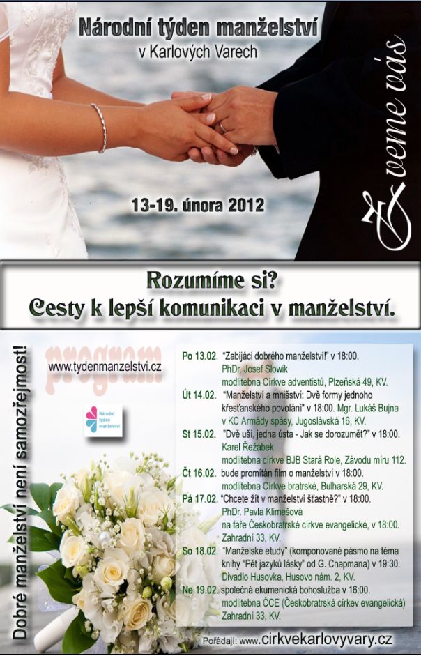Pondělí 13.2. od 18:00 hodin v modlitebně Církve adventistů sedmého dne v K. Varech – Doubí, Plzeňská 49: „Zabijáci dobrého manželství“ PhDr. Josef Slowík