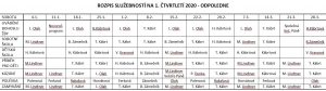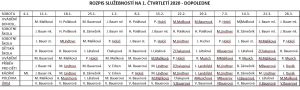 Rozpis služebností na 1. čtvrtletí roku 2020